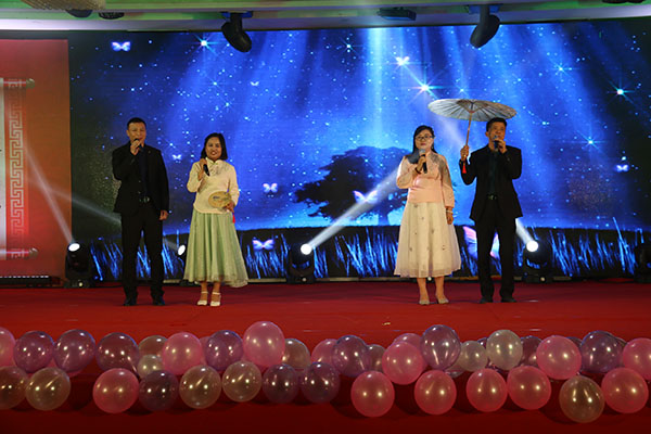 年會伊始,明泰人共同宣誓后,賀總?cè)记橹罗o總結(jié)2017的奮斗與收獲,展望2018的美好前景。之后明泰年會匯演正式開始,年會節(jié)目精彩絕倫,首先開場的舞獅子、財神撒紅包引領(lǐng)年會的熱潮,舞蹈《好運(yùn)來》再添喜氣,唯美歌曲《好時光》,活力四射的舞蹈《Four A R》,l更有朗誦講述明泰20年風(fēng)雨歷程,《肚皮舞》展示異域風(fēng)情,《變臉》弘揚(yáng)中華文化,捧腹大笑的小品《吃面》,你畫我猜的游戲環(huán)節(jié).....別出心裁的創(chuàng)意配合豐富多彩的表演,將整場晚會推向了一個又一個高潮!
